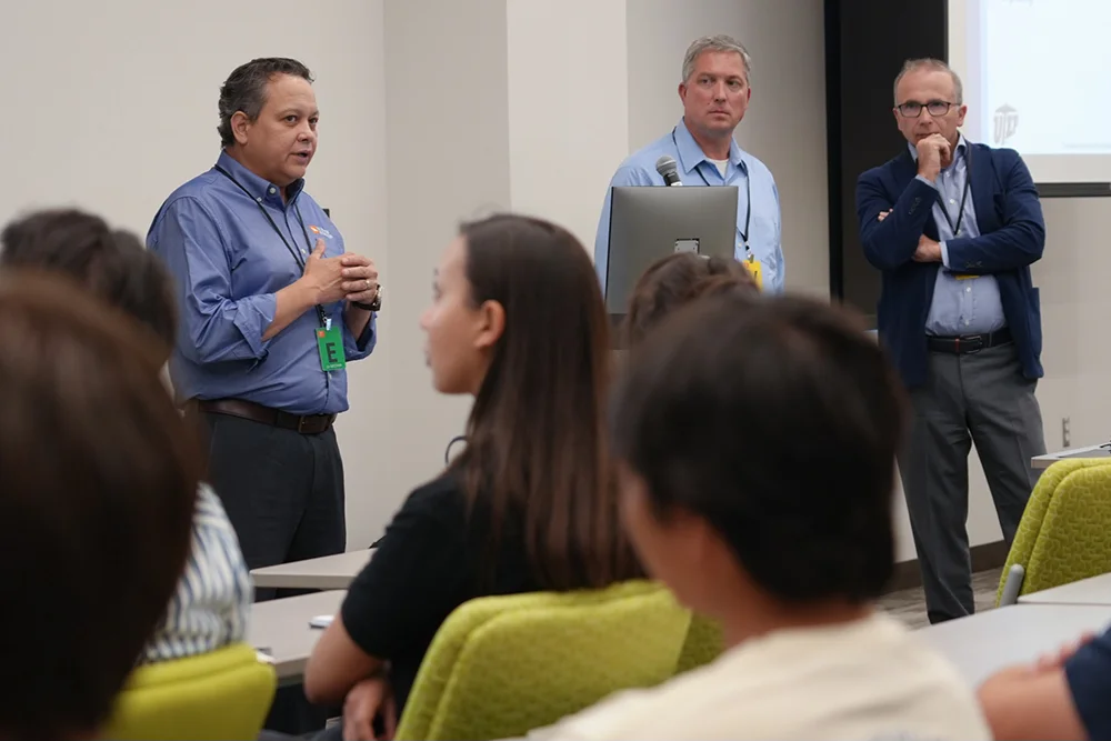 MPIF’s Wiley Abner and VALIMET’s Luigi Alzati volunteered for the job, joined by Dr. Ian McCarthy. 51 curious and cheerful students showed up.